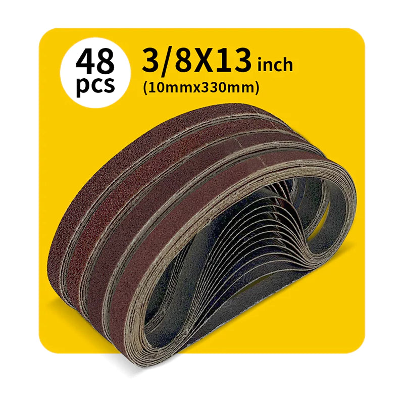 Take on any sanding job with TPmax 3/8" x 13" Aluminum Oxide Sanding Belts – now available in versatile multi-grit assortments!